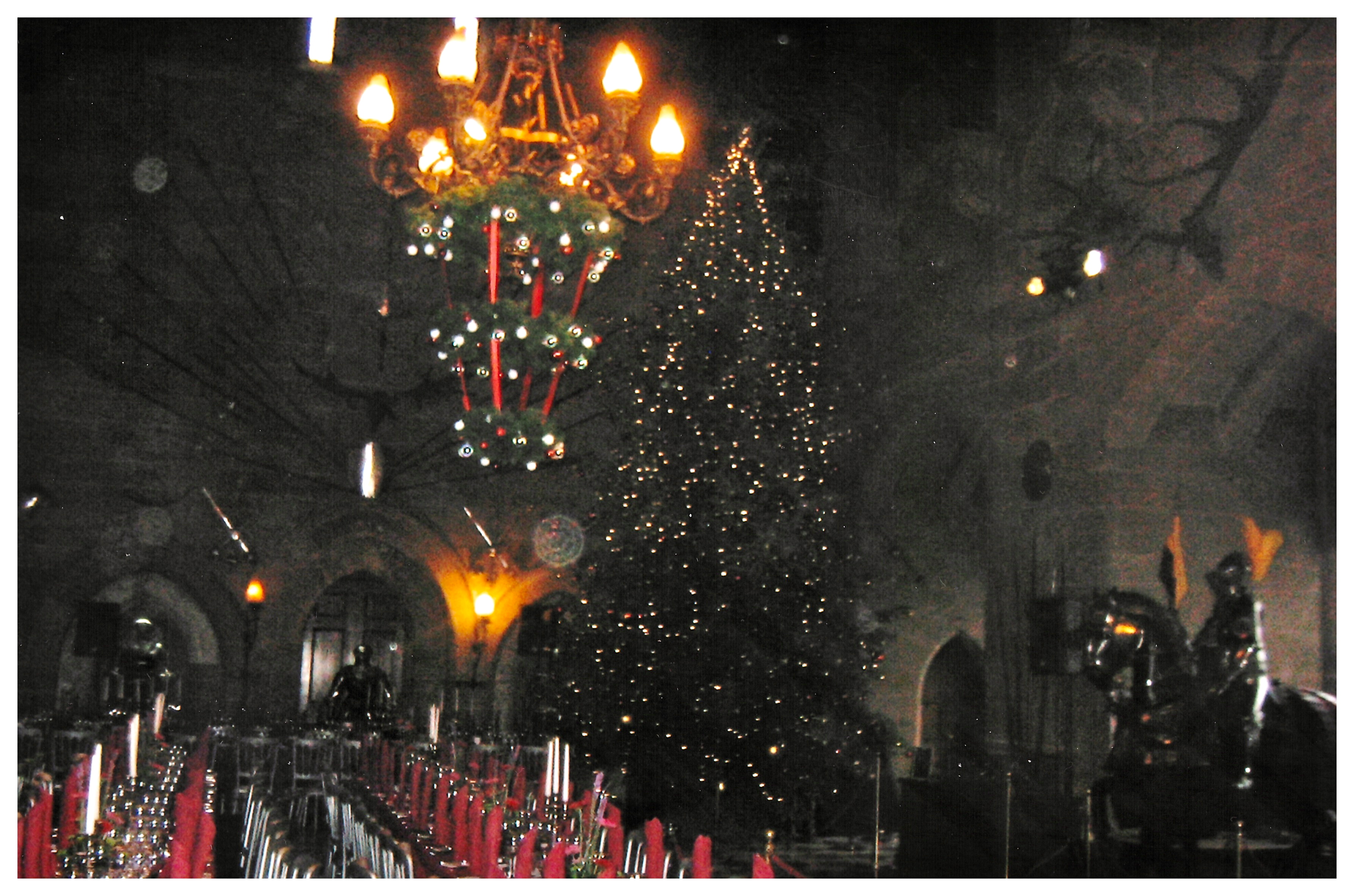 The first image is taken inside the Great Hall, which, as you can see, was set up for a Christmas function. As you can also see, there are loads of orbs in this image, including a tiny one way up high, and another hovering like a bauble at the lower right of the Christmas tree. There is also a cluster of orbs running along the left side of the image. Perhaps a ghostly party going on? Or just a dusty old castle?