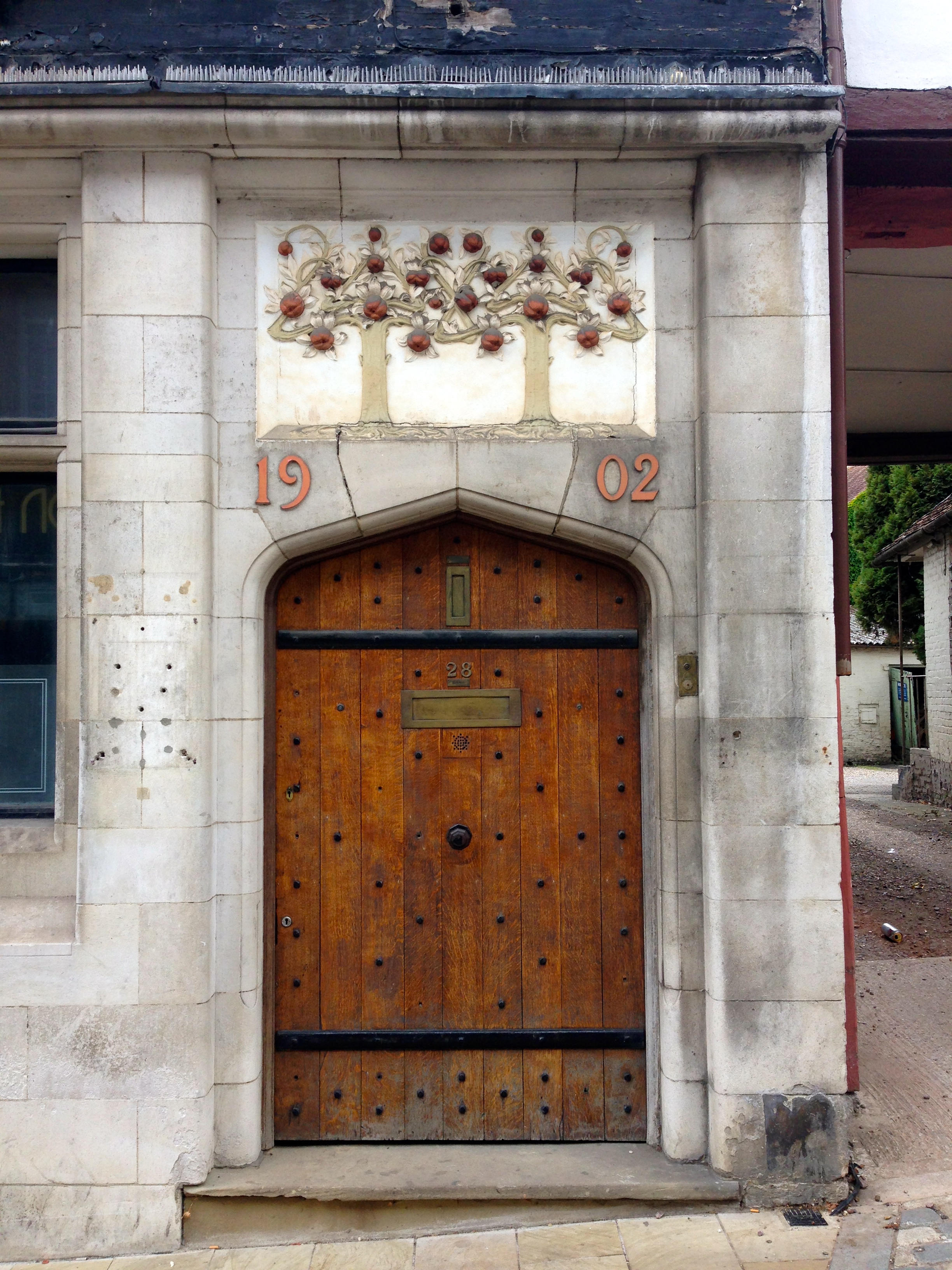 This week’s door is another one close to home. It’s the entrance to a building in our Old Town, which dates back to the 1500s. As you can see by the date, this door is a little newer, though with design nods to an earlier age. 1902 places it at the height of the Art Nouveau period, typified in the tree decoration above the door. I absolutely love it.
