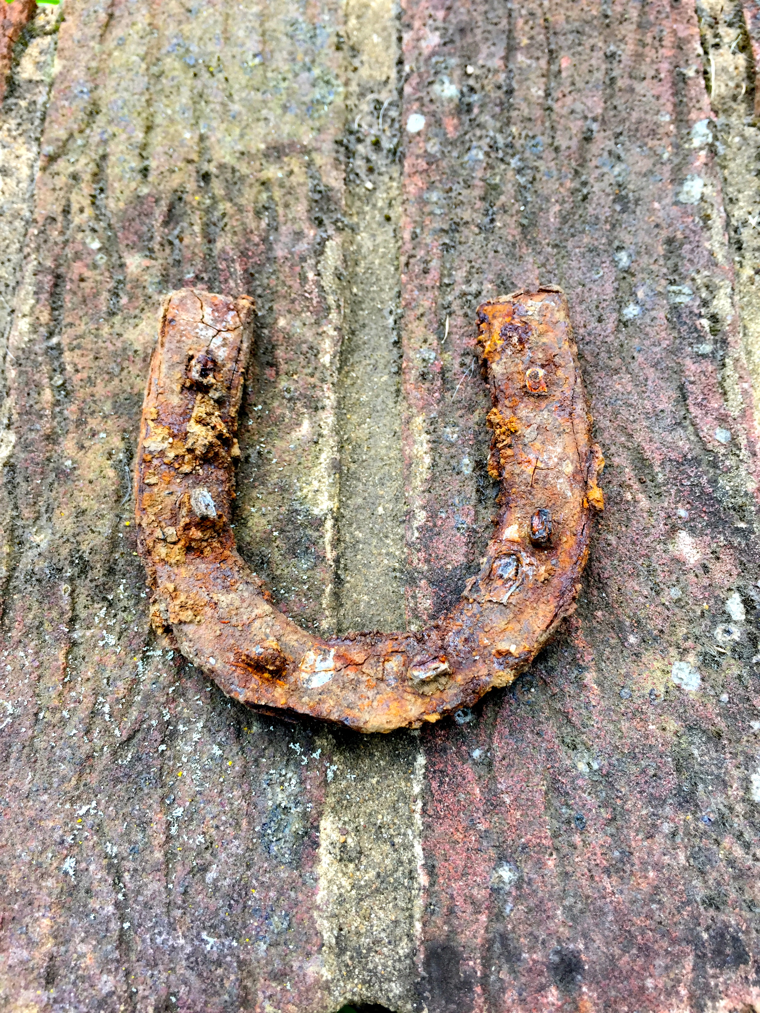 IMG_2311 It’s a horseshoe, obviously. At least, I think it is. Rusty, with most of the nails still in place, and surprisingly light. But it seems a bit smaller than the average horseshoe: