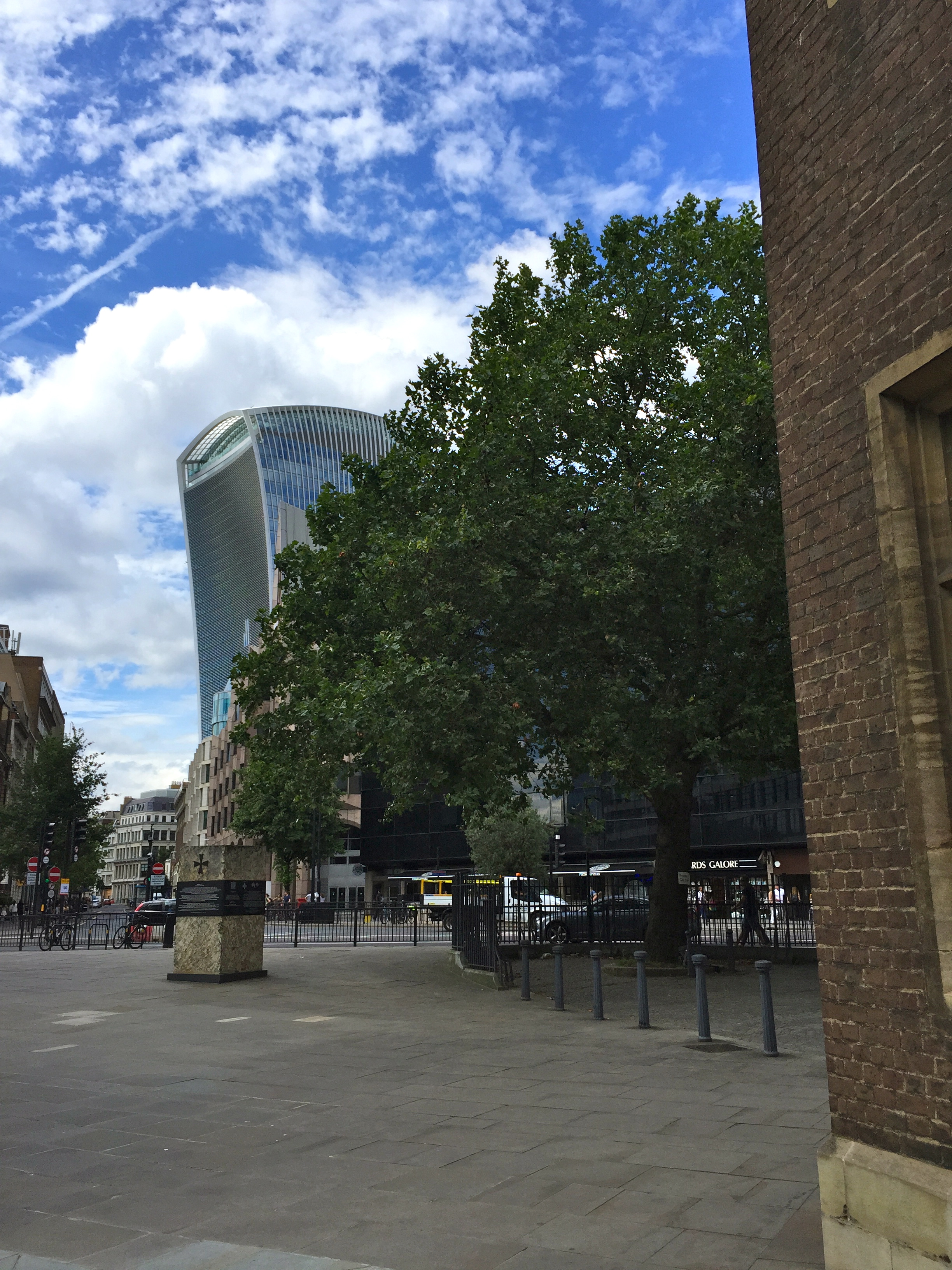 1. Yes, and from other angles it seems to loom over everything. My friend said it was ‘photobombing’ us as we tried to take photos of the older buildings. I wrote a post earlier this week where I shared a photo I took and it looks as though it’s been badly photoshopped into the frame. It’s a controversial building for several reasons, I think, although I hear the Skygarden at the top is quite fantastic.