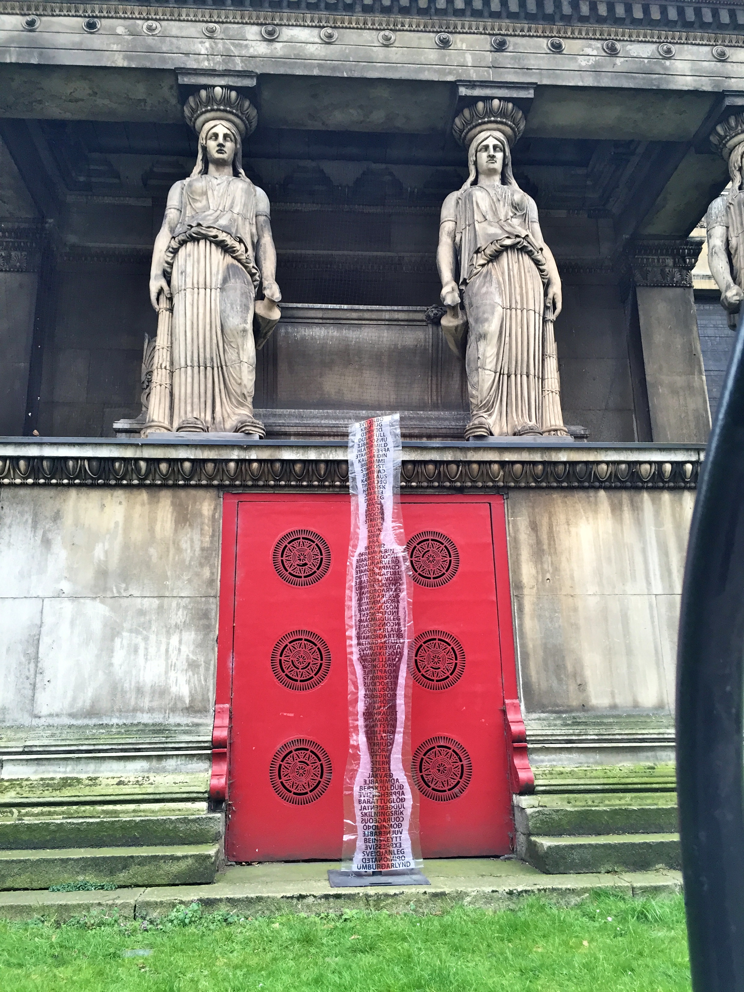 This is a side door to the St Pancras New Church, London. The banner in front is an art installation there at the time I took the photo, but I don’t think it detracts from the rather splendid red doors.