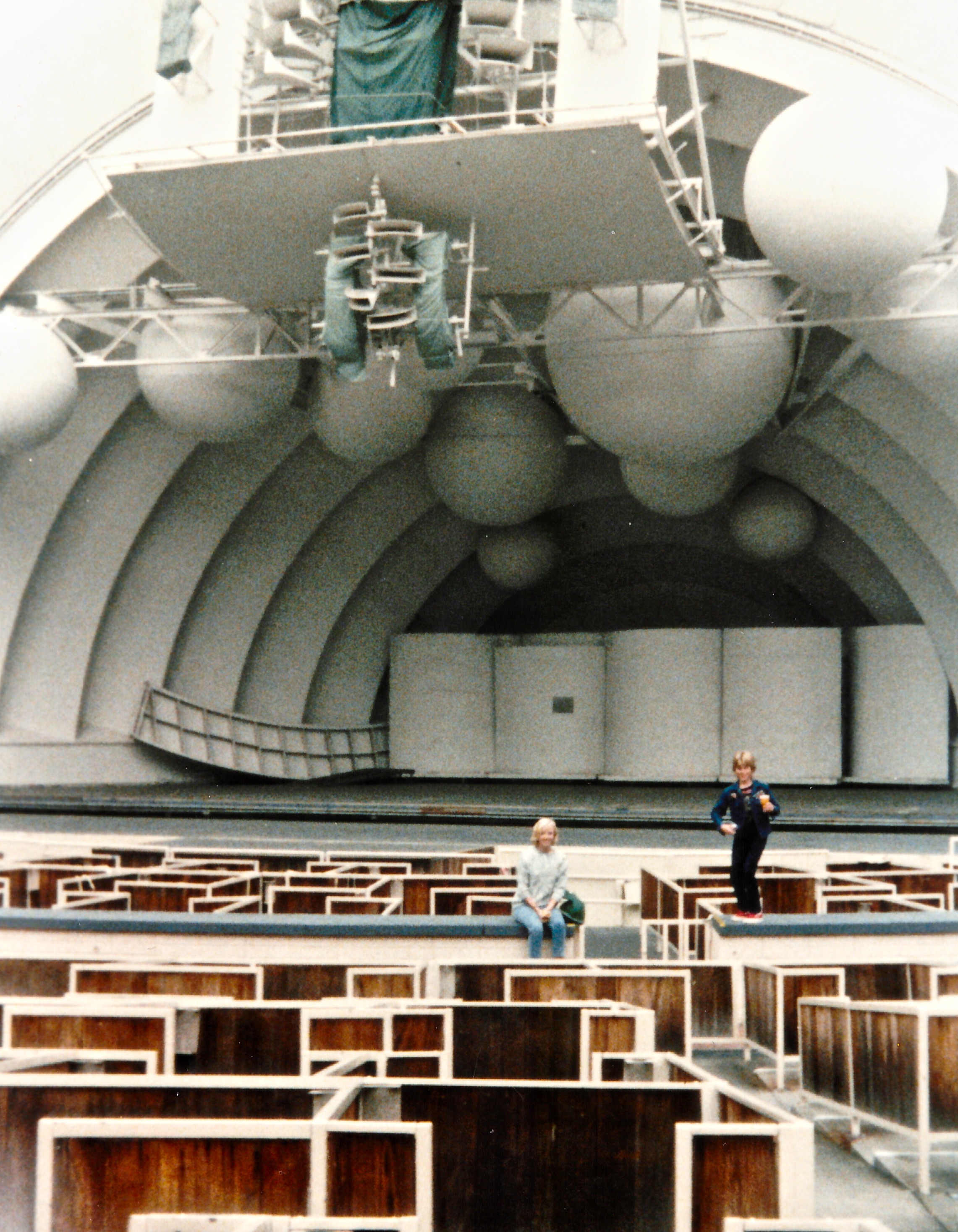 And here we are. My brother and I at the famed Hollywood Bowl, just sitting casually in front of the band shell. Well, at least I am. My brother looks, oddly enough, as though he’s playing air guitar. Odd, because he went on to become a professional musician, and now plays guitar all around the world. Not sure if he’s played at the Hollywood Bowl though – I’ll have to ask him.