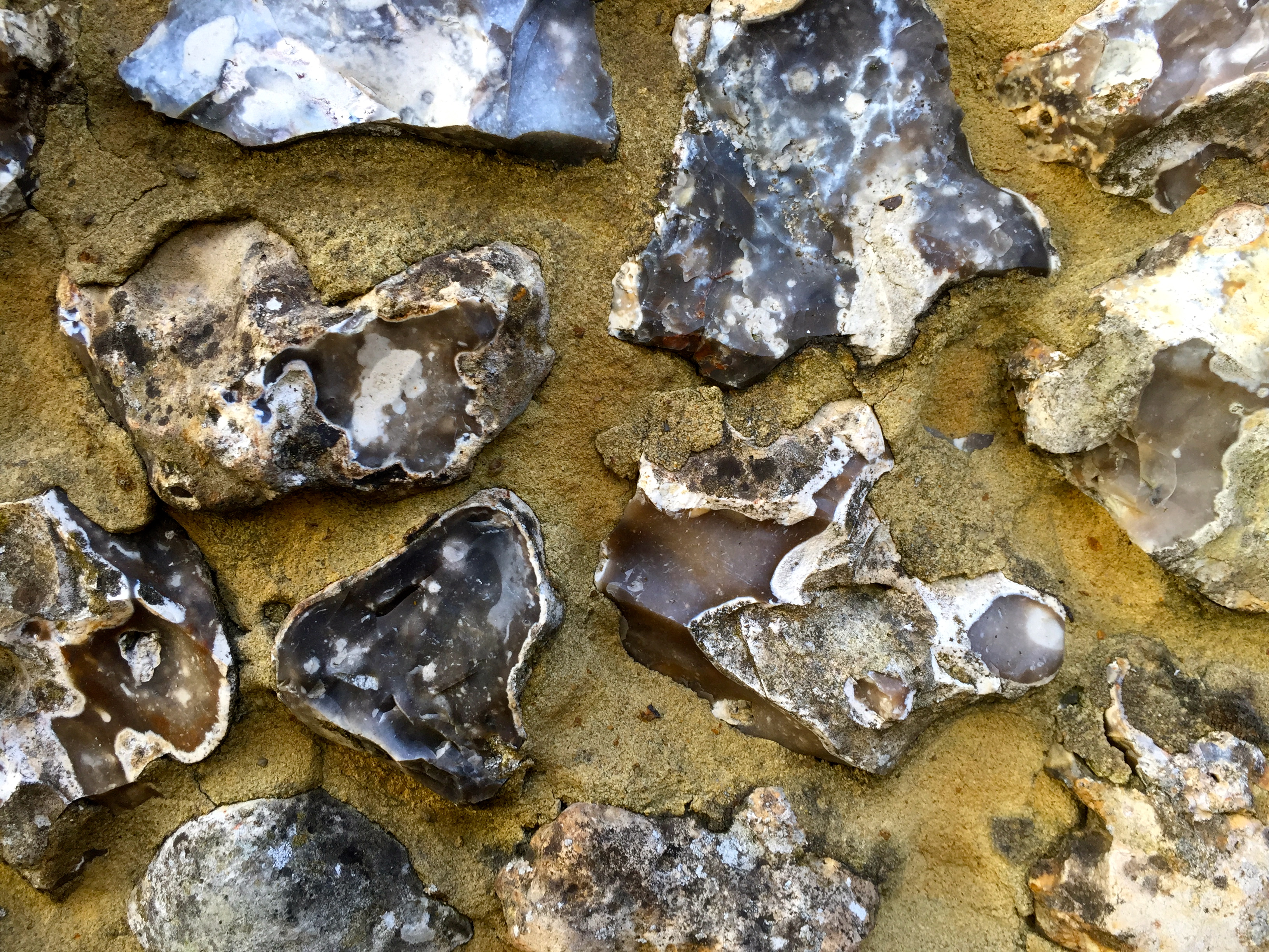 I live in a landscape made of flint and chalk, tumbled like the bones of the earth within dark soil. Huge knobbly flints show up in walls from the smallest cottage to the largest cathedral, builders making use of what they had to hand. They lie in garden beds too, clogged with soil, strange shapes looking as though they were formed by hand, though no hand but that of nature has touched them.
