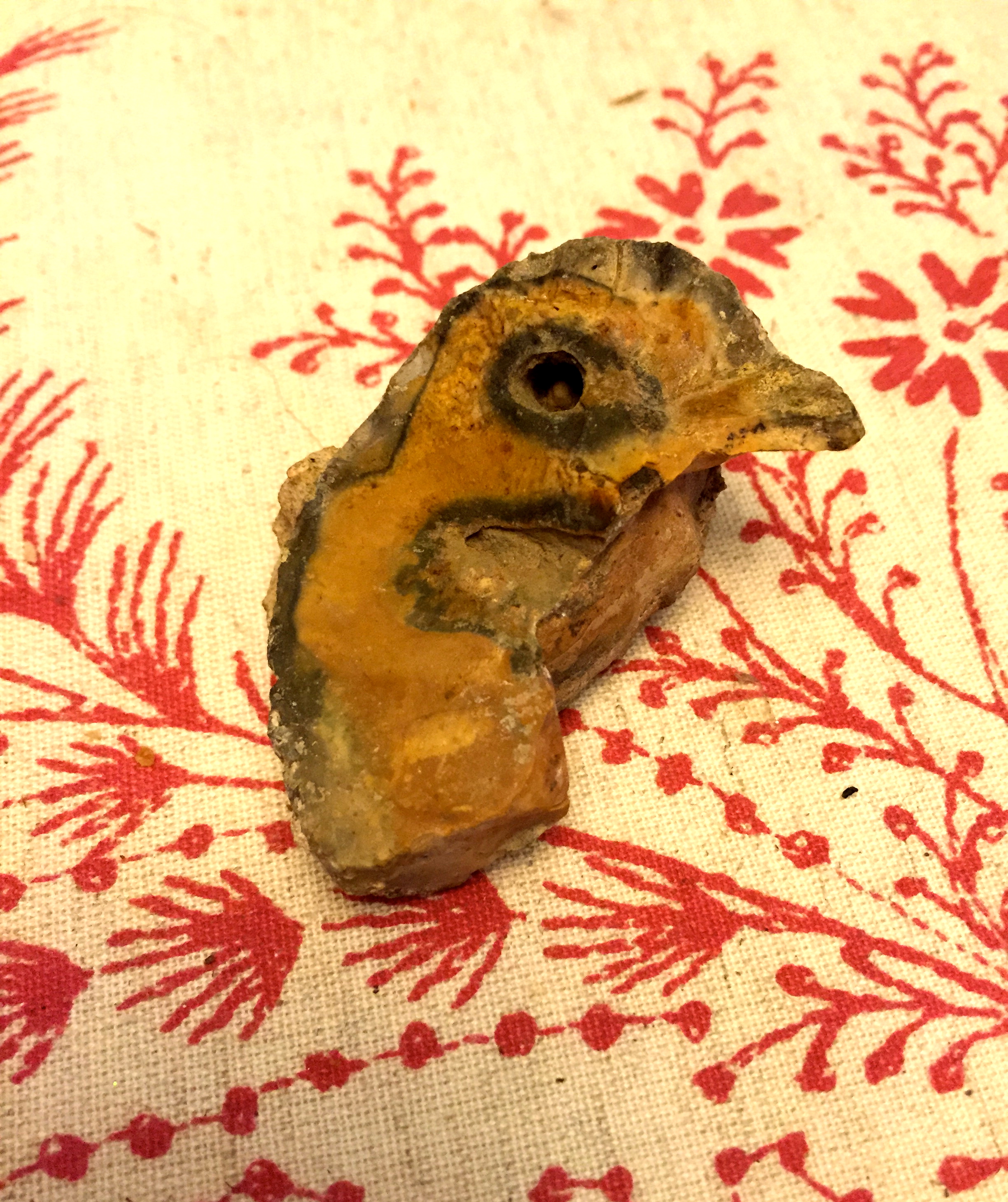 Once I found a flint that looked as though a star had been caught inside, a little piece of sky fallen to earth. And, when working in our garden over the summer, we found this. A strange bird-like creature, dark eye staring, stone cradling the slender neck. Frozen in time, funny little bird stone. He sits on my desk now, keeping me company as I write, so I thought I’d share him with you too.