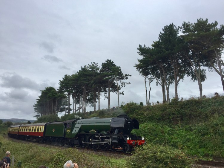 As we walked back from the beach we took a bramble-lined path running between the trainline and the sea. In the 19th century, Watchet was a centre of the industrialised paper industry, its products travelling country-wide. Now the tracks are used by commuters and sightseers, and it was a rather special day. The famous Flying Scotsman steam train was in town, taking people on journeys through the beautiful green countryside. People lined the tracks to watch it pass, and so did we.