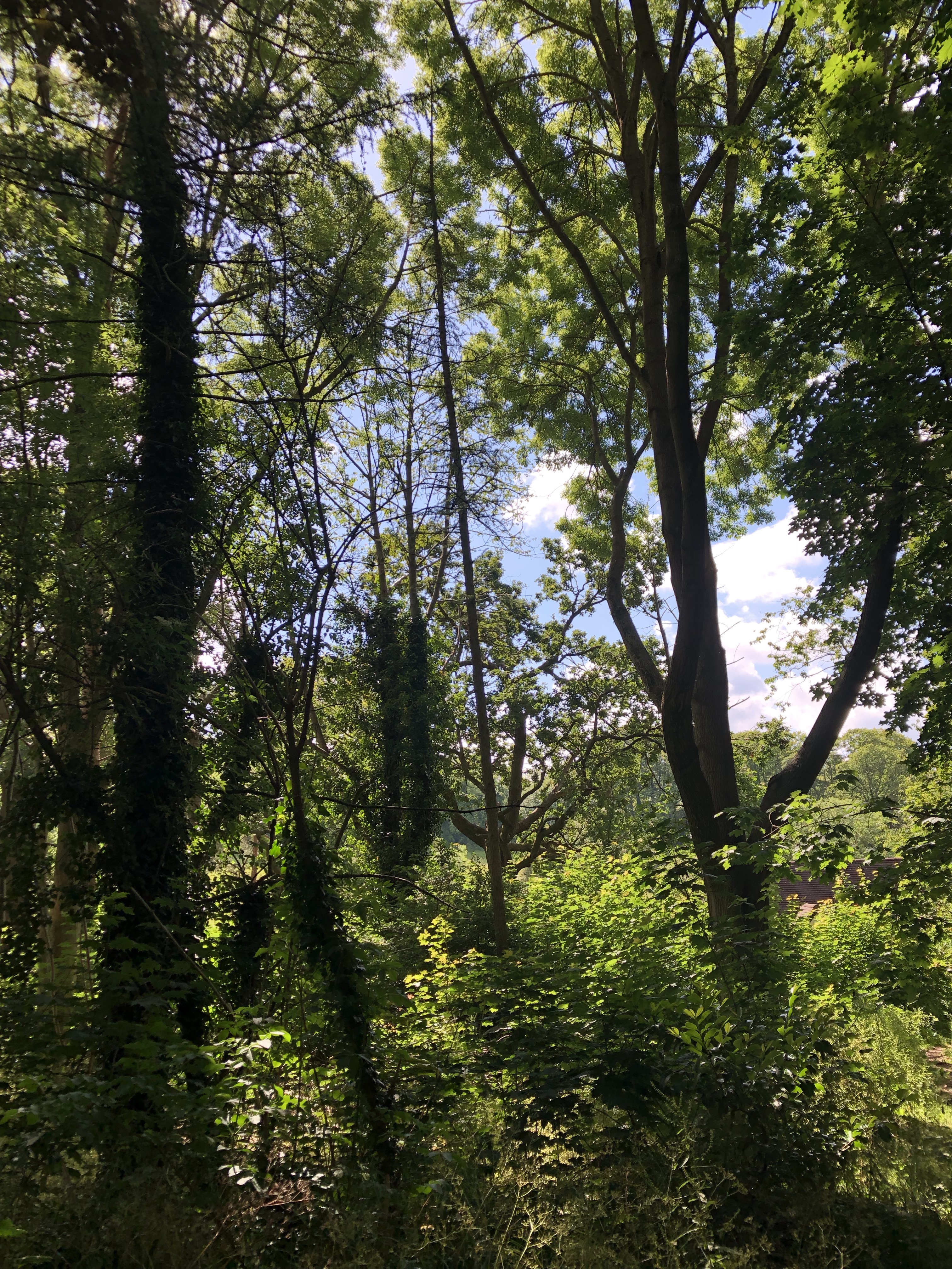 Today, however, my canine companion and I took the winding streets and backways until we reached the Little Wood, as it’s called, a small patch of wilderness leading to a green and pleasant meadow, one of doggo’s favourite places to run and play.