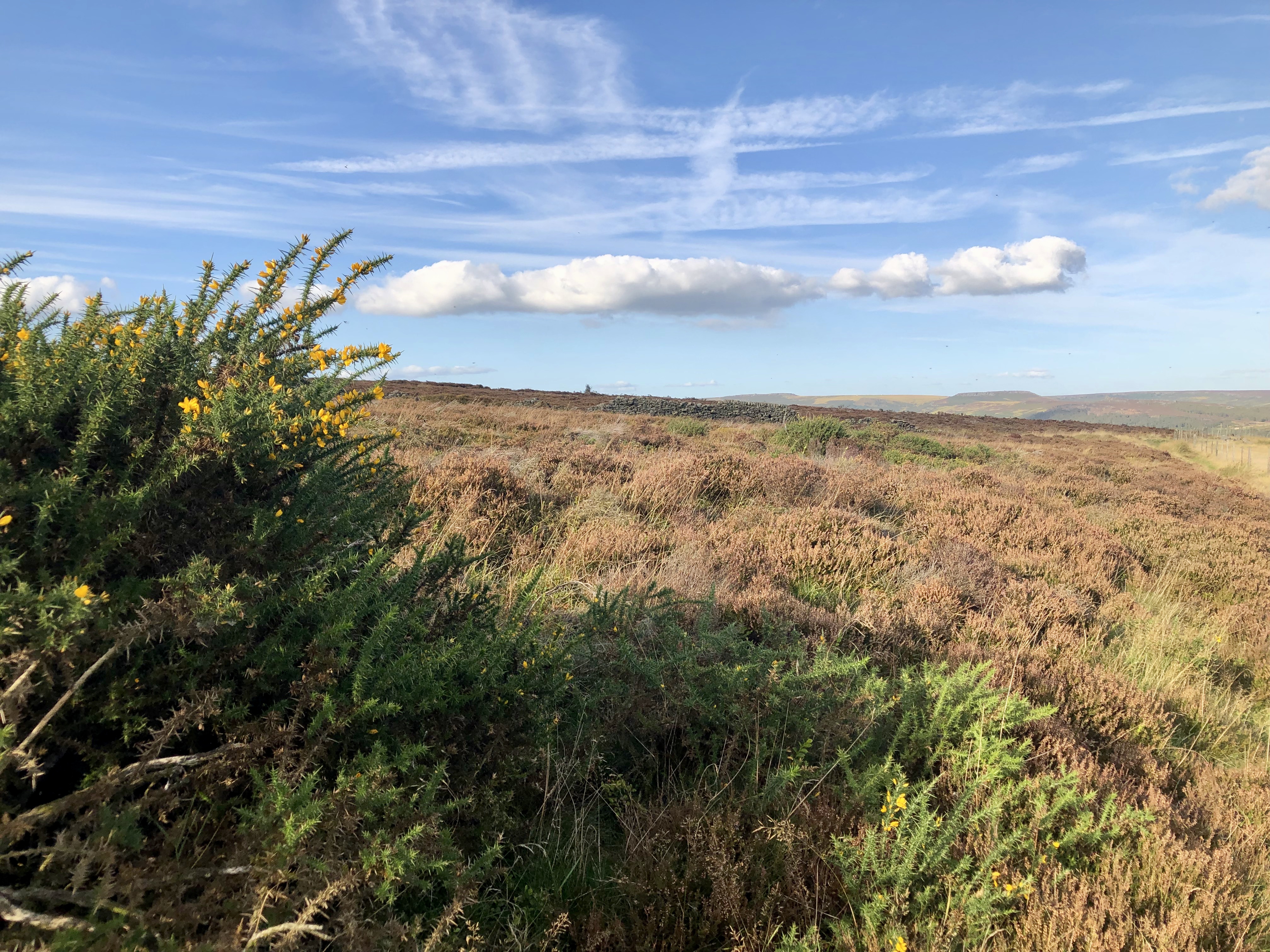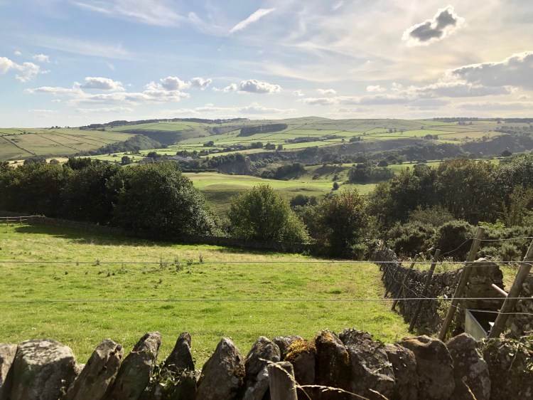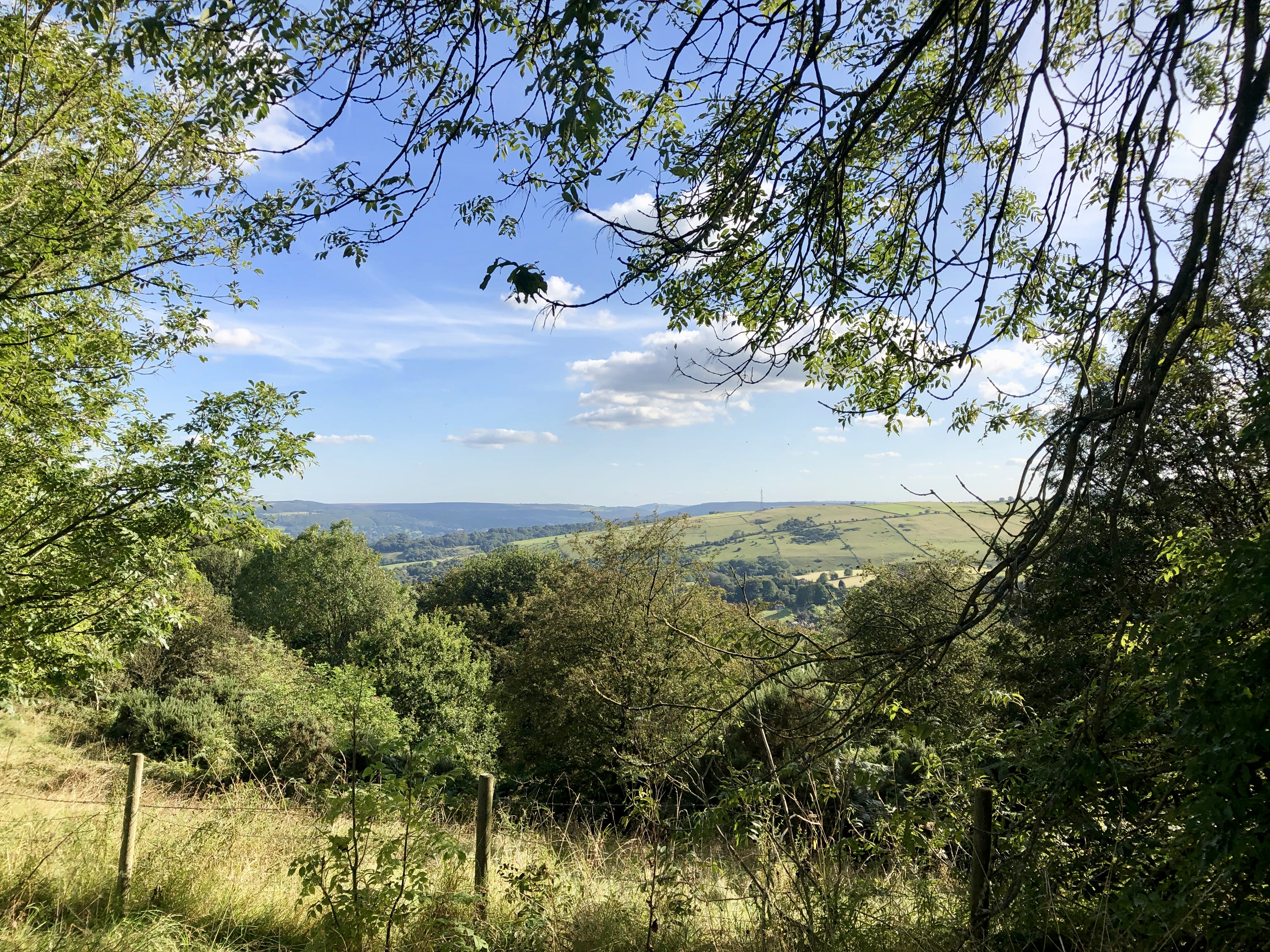 We travelled through Eyam, the road taking us higher and higher, the valley opening away to our right. And as we did so the air began to clear, the strange weight that had burdened me lifting. We continued along a narrow track edged with tangled brambles and tall nettle, a fairy-tale barrier between us and the view. Taking a fork in the road among tall trees, Sue pulled the car onto the narrow verge to park.