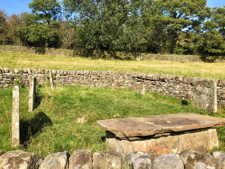 Once again, Sue has written an excellent detailed account of what happened on the ridge, but the short version is this: As plague raged through the village in the valley below, two families, living separately on the ridge, hoped, perhaps, that distance would keep them and their children safe. However, it was not to be, with first one family, then the other, succumbing. But the cruellest blow was to Elisabeth Hancock, who, between August 3rd and 10th, lost her six children and her husband to the terrible virus. Isolated as she was on the high ridge, the neighbouring family having already succumbed to plague, it was left to her to bury her babies and spouse, one by one, carrying their bodies across to the shallow graves she’d dug, wondering, perhaps, when the disease would take her as well. I cannot imagine her pain, and, after what I’d experienced in the village, it was with some trepidation that I initially approached the small group of graves.
