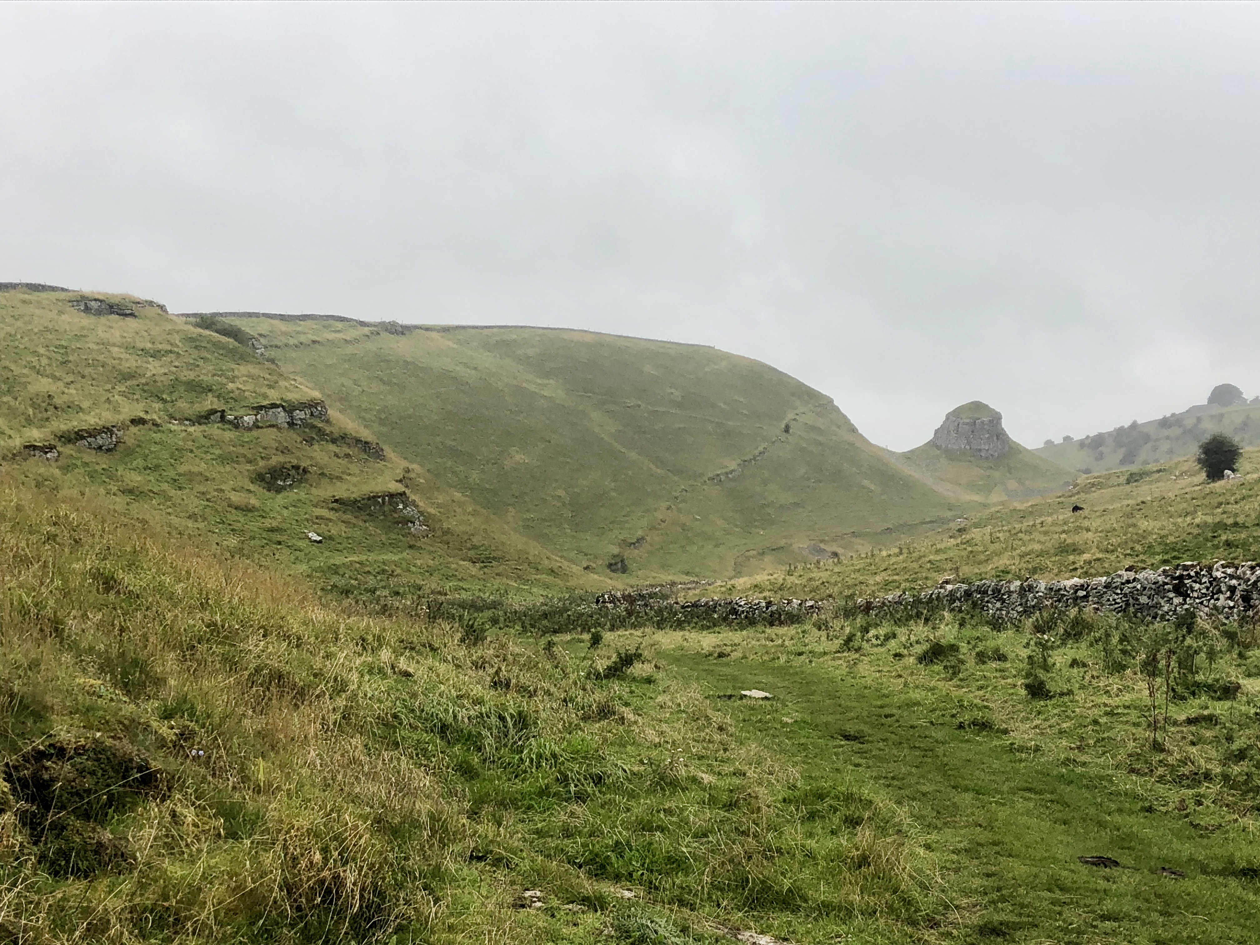 Peter’s Rock, a natural rock outcropping thought to have slid away from the adjacent hillside, is so named because it apparently resembles the Dome of St Peter’s in Rome. The valley approach holds several hermit caves and, beyond, leads to the ancient sites of Monsal Head and Finn Kop. The latter is thought to have been a sacred place of study, and there are plenty of indications that his has been an important landscape for a long time. (For more information about the landscape and its history, see Sue’s excellent post about it here).