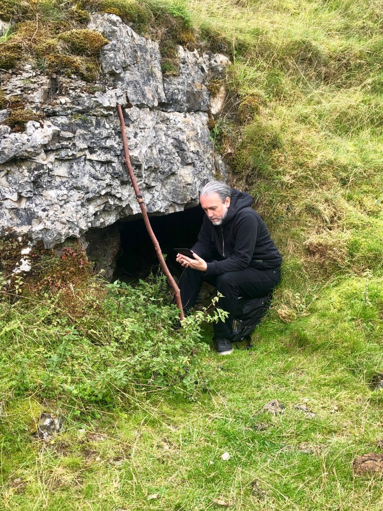 As we approached the rock, we stopped at one of the hermit caves to discuss the history of the place, and also to open the circle. I couldn’t stop looking at the rock – I found it fascinating, something about it drawing me in. There were a few other walkers about, despite the weather, as well as some lovely dogs, and once again we took a moment to chat. I also managed to capture this shot, which I like to call ‘Modern Hermit.’ A meditation was shared, an idea discussed of what things might have been like in the valley in ages past, and what might have happened here. And then we moved forward once more.