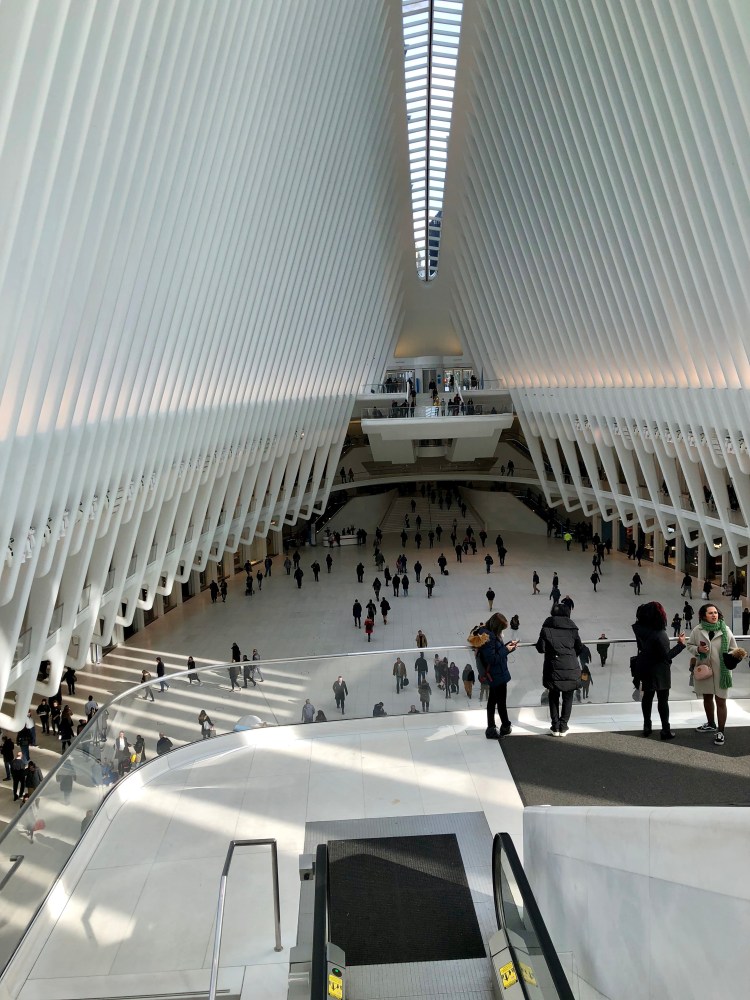 This is the Oculus, the most expensive train station in the world, built to replace the World Trade Centre station which was destroyed in the attack. It is a building that has apparently divided New Yorkers, with some loving it and others hating it. To me, it felt triumphant, like some sort of fantastic bird rising from the ashes of sorrow. Inside it was spectacular, like a bright vision of the future. Quite appropriate, in such a place.