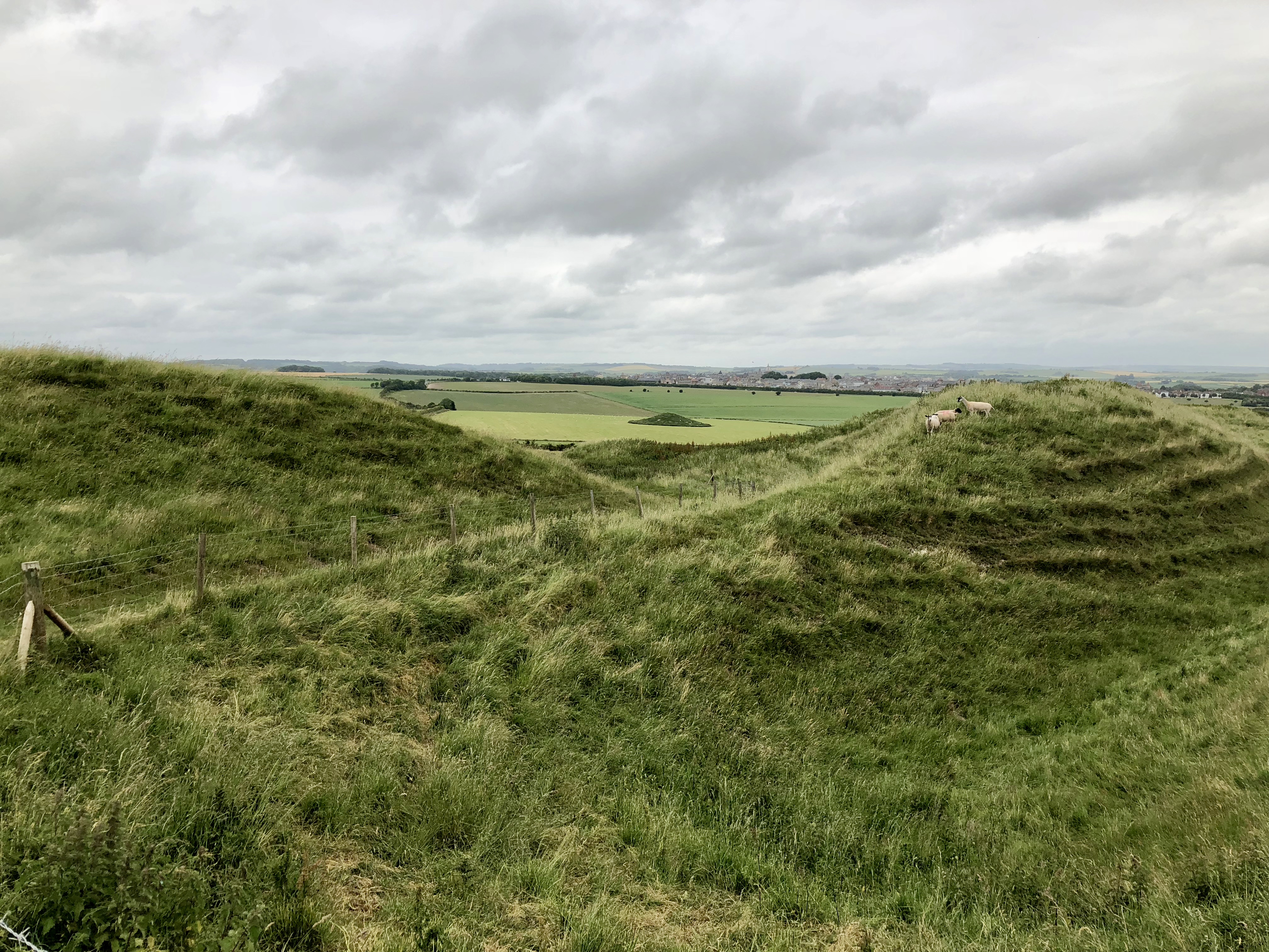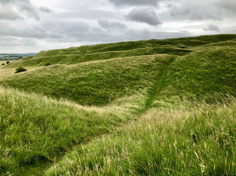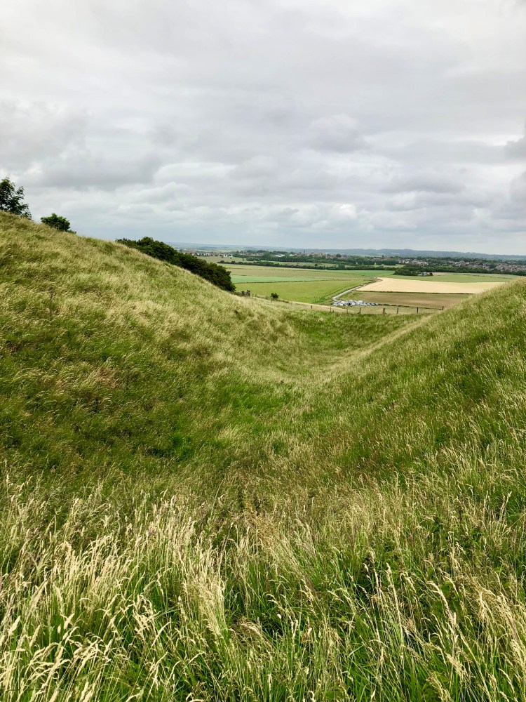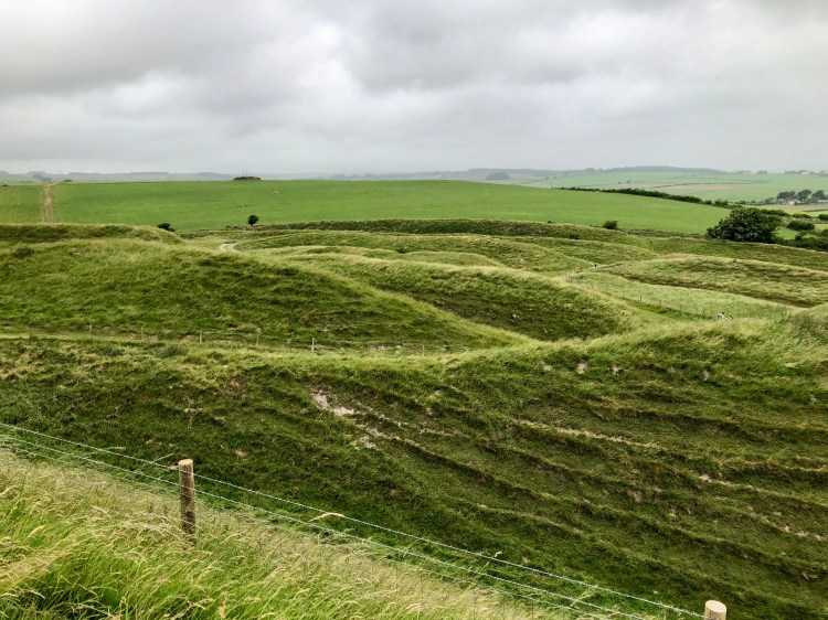 But I also think that Maiden Castle, which was the next stop on our weekend, is somewhere that I’m still processing, the echoes of our visit there ringing through my mind. It was massive, in so many ways. Sue had warned me, the previous afternoon, as we were making our mad time-twisting dash between churches. ‘I want to see your expression,’ she said, ‘when you first see it.’
